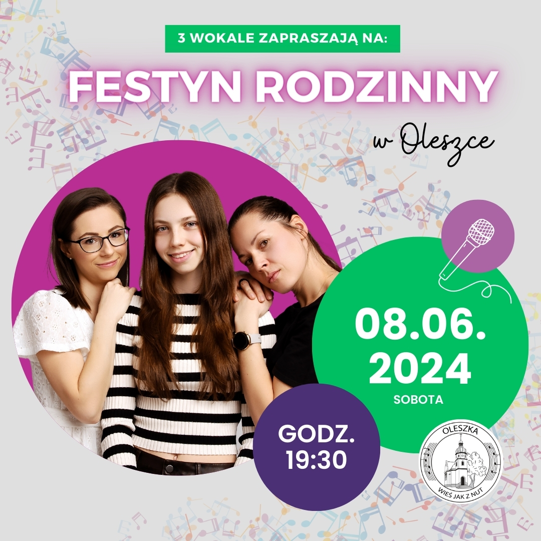 Festyn rodzinny / Oleszka Data 08 czerwca 2024 Zakończone Czas 19:30 Lokalizacja Oleszka Oleszka, 47-330 Zdzieszowice Strona WWW https://www.oleszka.eu/ Kategoria Występy