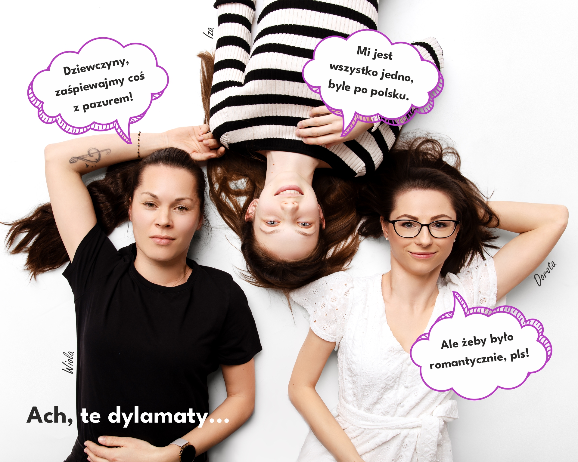 Możemy zaśpiewać każdą piosenkę pod warunkiem, że jest romantyczna, rockowa i po polsku. A tak na poważnie; przy wyborze utworów kierujemy się muzycznym klimatem. Śpiewamy to, co lubimy, dlatego daje nam to tyle radości.